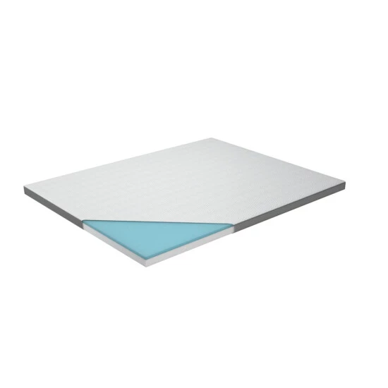 Die Matratzenauflage besteht aus zwei Schichten und kombiniert Druckentlastung und Stützung zugleich. So unterstützt der Topper die Wirbelsäule vom Kopf bis zum Becken und bietet gleichzeitig Komfort und Elastizität für Seiten-, Bauch- und Rückenschläfer. Rücken- und Gliederschmerzen, Schlafstörungen und Kopfschmerzen können vorgebeugt werden.