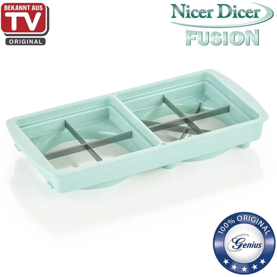 Damit ist jetzt Schluss: Mit dem Nicer Dicer Fusion und dem genialen Nicer Slicer haben Sie alles in Einem – einfacher, praktischer und platzsparender geht es wirklich nicht!